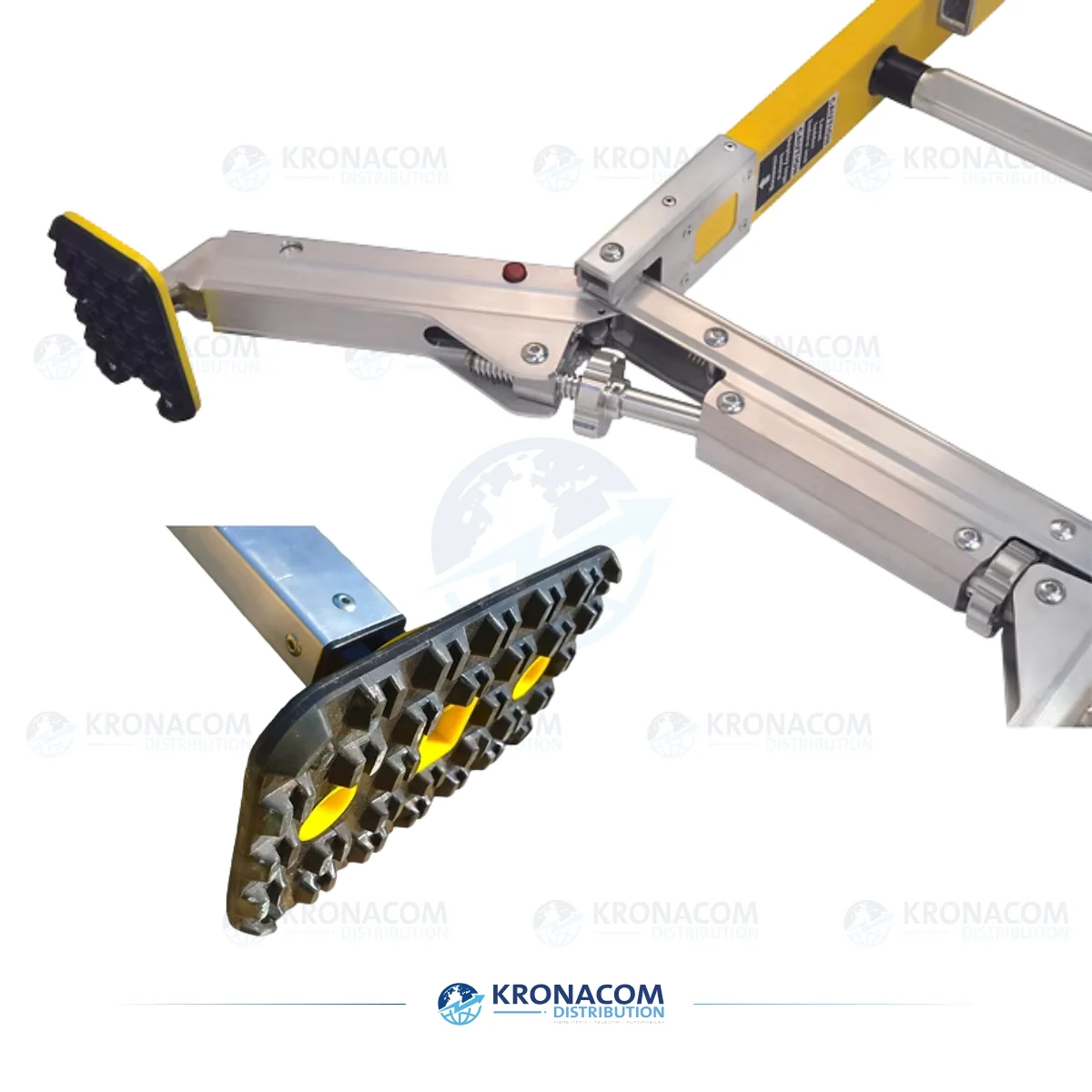 Die Leiter erfüllt die Norm EN 131-2+A2 und ist für eine maximale Belastung von 150 kg ausgelegt. Fiberglas-Holme machen die Leiter elektrisch isolierend und besonders witterungsbeständig. Sie ist leicht, einfach zu transportieren und reduziert deutlich Wackeln und Verdrehen.