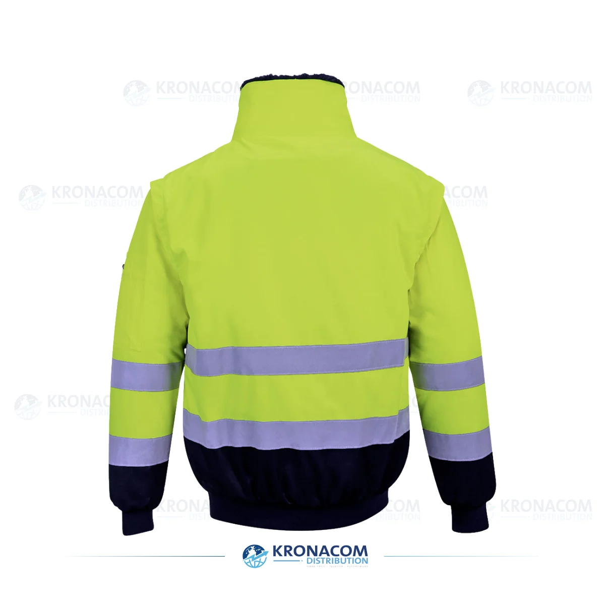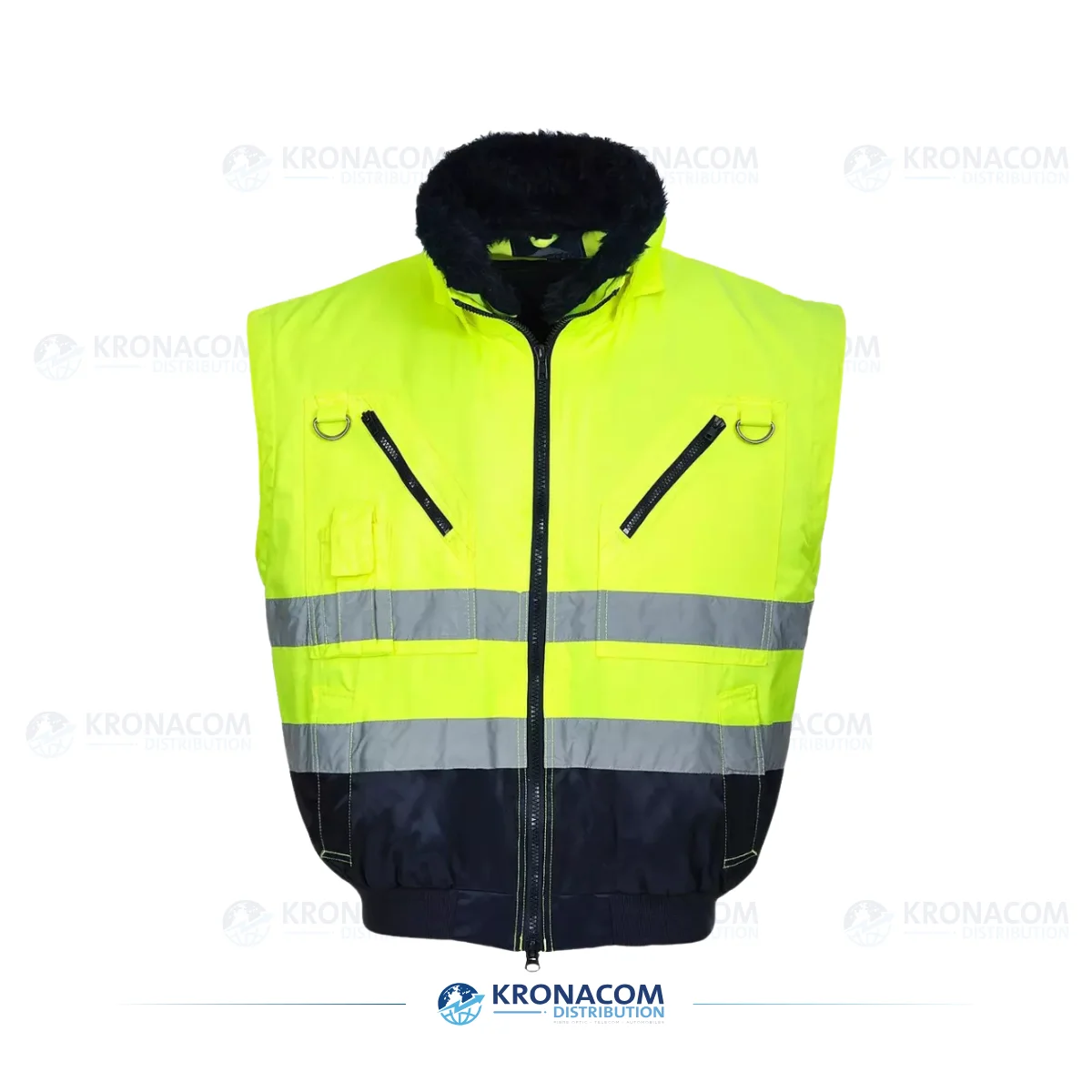 Vielseitige Hi-Vis Pilotjacke mit 3-in-1 Funktion: abnehmbare Ärmel, Pelzfutter und Kragen für maximalen Wetterschutz, Komfort und Sichtbarkeit in allen Arbeitsumgebungen.