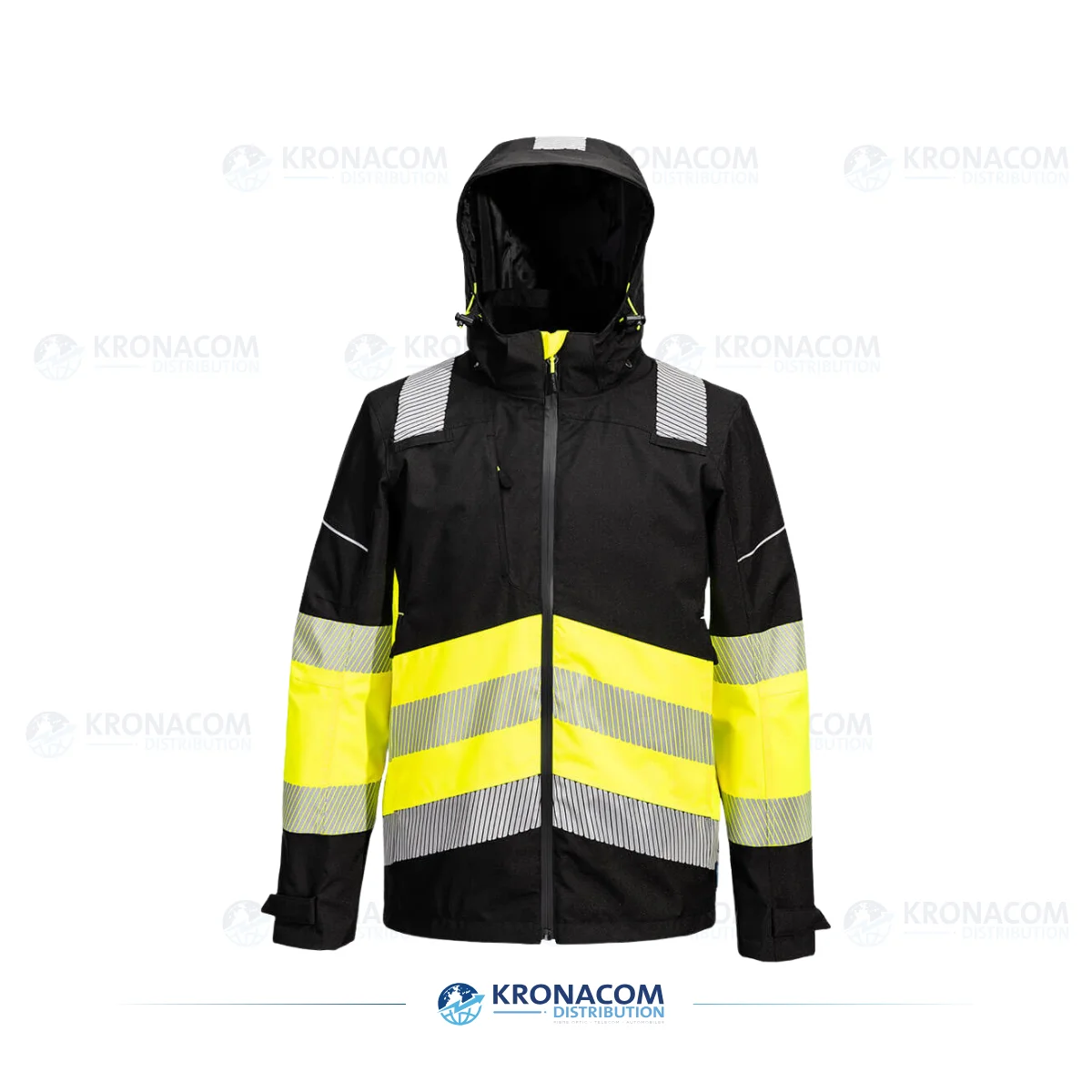 Diese hochwertige Hi-Vis Regenjacke ist wasser- und winddicht, während sie durch atmungsaktive Mesh-Einsätze für optimale Belüftung sorgt. Die ergonomische, abnehmbare Kapuze, 7 praktische Taschen, versteckte Innentaschen und wasserdichte Front- und Unterarm-Reißverschlüsse garantieren Sicherheit und Komfort bei allen Witterungsbedingungen. Thermogeprägte, segmentierte Reflexstreifen erhöhen die Sichtbarkeit, während der moderne Schnitt und das leicht dehnbare Material uneingeschränkte Bewegungsfreiheit ermöglichen.