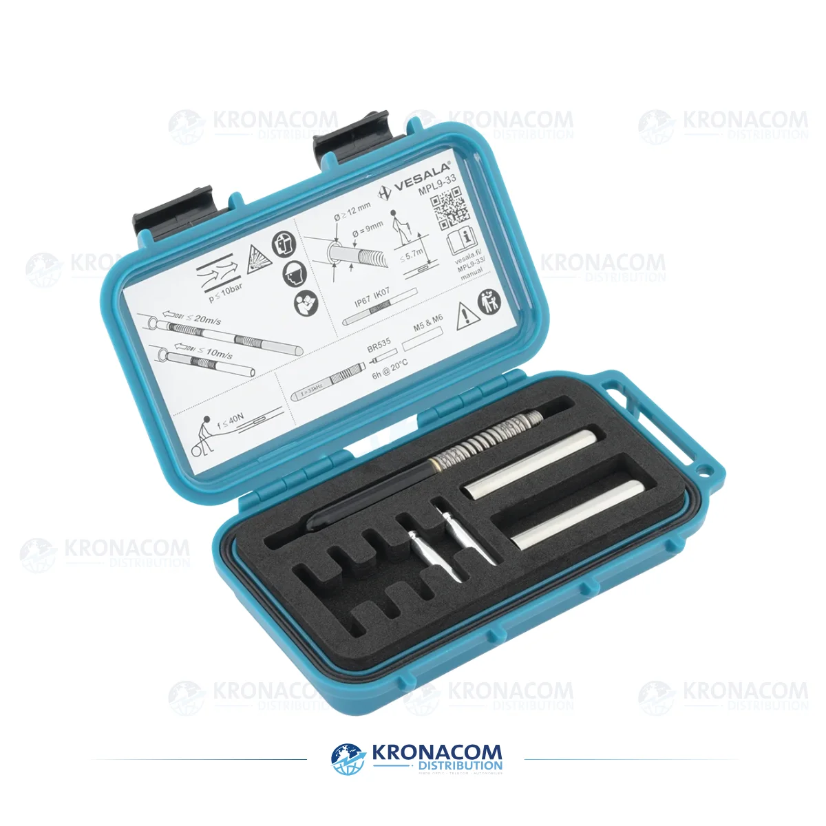 Mit einem Durchmesser von 9 mm und einer Länge von 137 mm inklusive Batteriefach sendet die Sonde ein kontinuierliches sinusförmiges Signal bei 32,768 kHz. Hergestellt in Finnland.