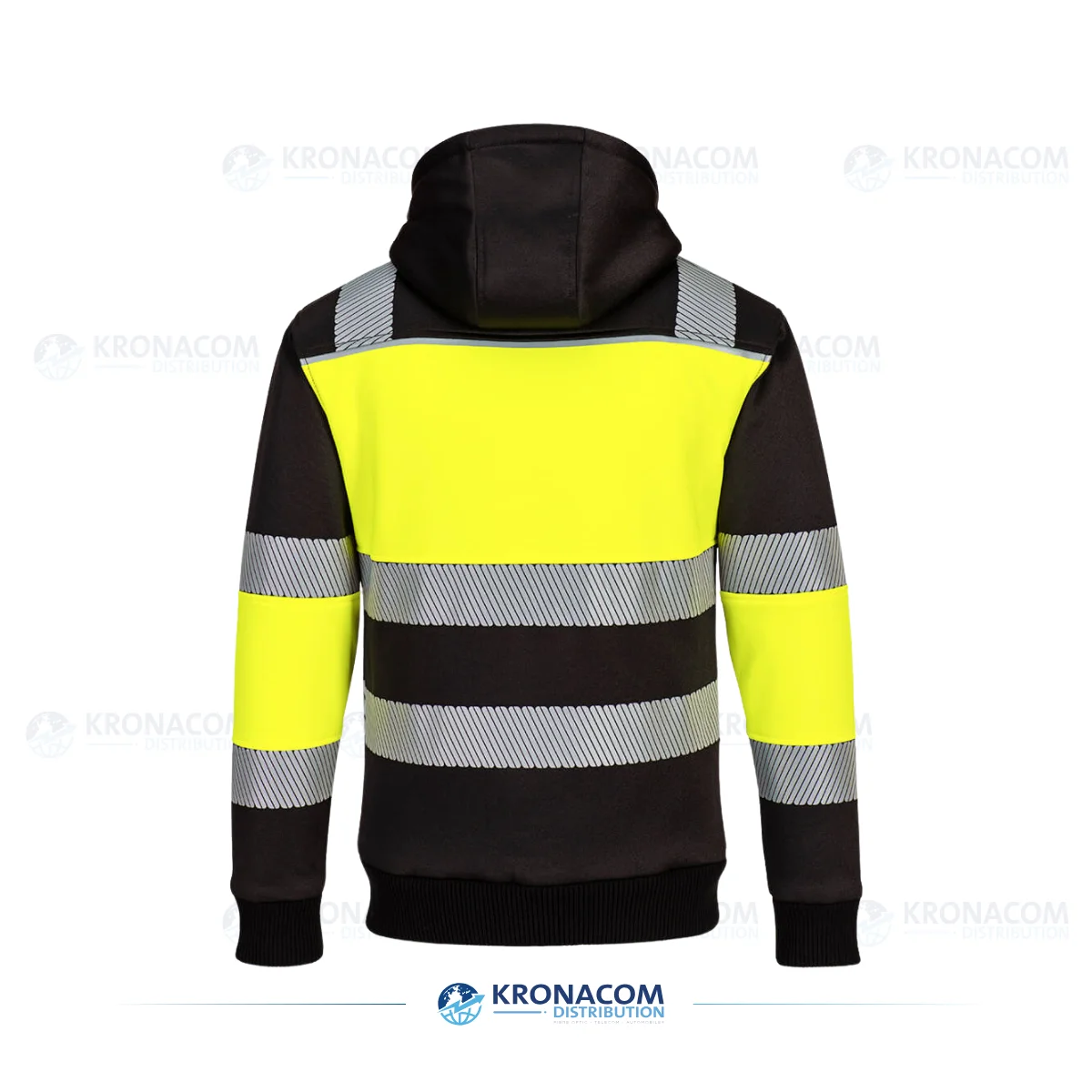 Die Rippbündchen an Ärmeln und Saum, zwei sichere Seitentaschen und der Hoodie mit Kapuze sorgen für Schutz vor Wind und Kälte. Segmentierte HiVisTex Pro Reflexstreifen erhöhen die Sichtbarkeit bei schlechten Lichtverhältnissen. Ideal für Handwerker, Logistik- und Bahnpersonal.