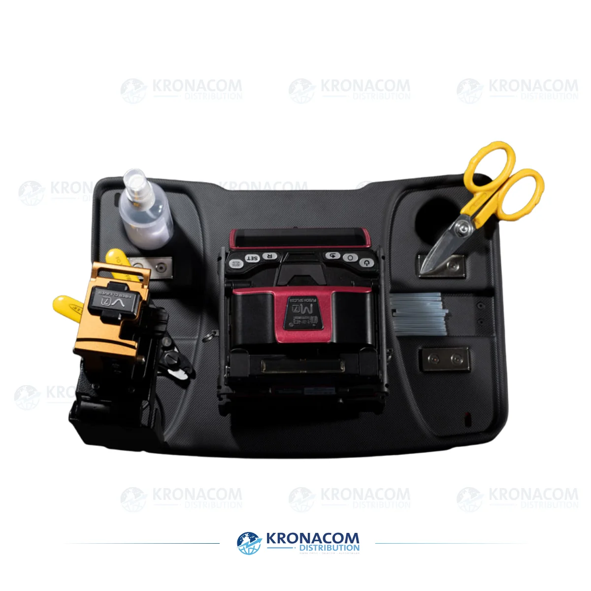Der UN1CO MOBILE von Fibernet ist ein leichtes, kompaktes Smart-Tray für Glasfaserspleißgeräte und Cleaver, das Werkzeuge sicher hält und Stürze verhindert.