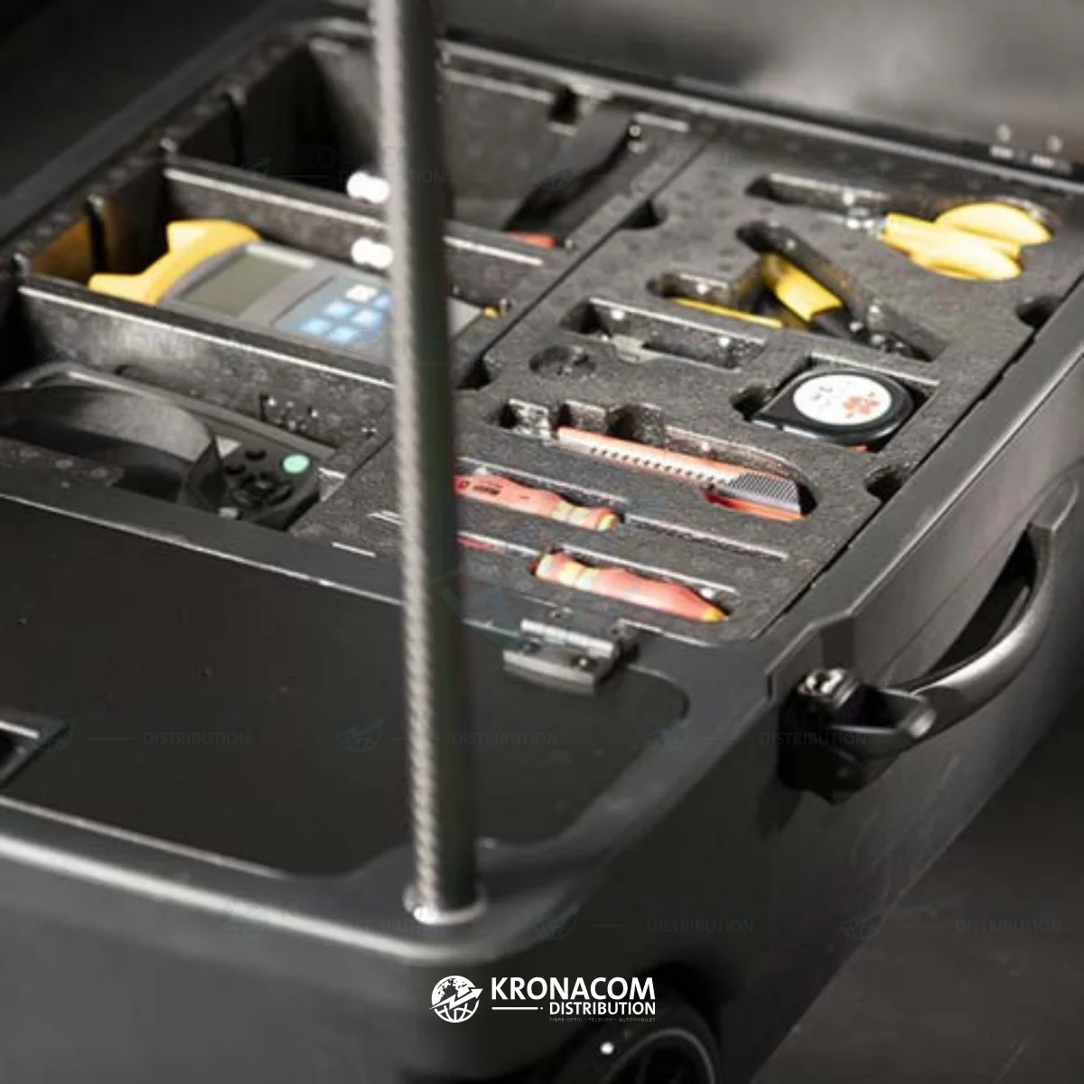 Der UN1CO ONE von Fibernet ist eine modulare, tragbare Arbeitsstation in Trolley-Form, die den Transport von Glasfaserwerkzeugen und Spleißgeräten erleichtert.